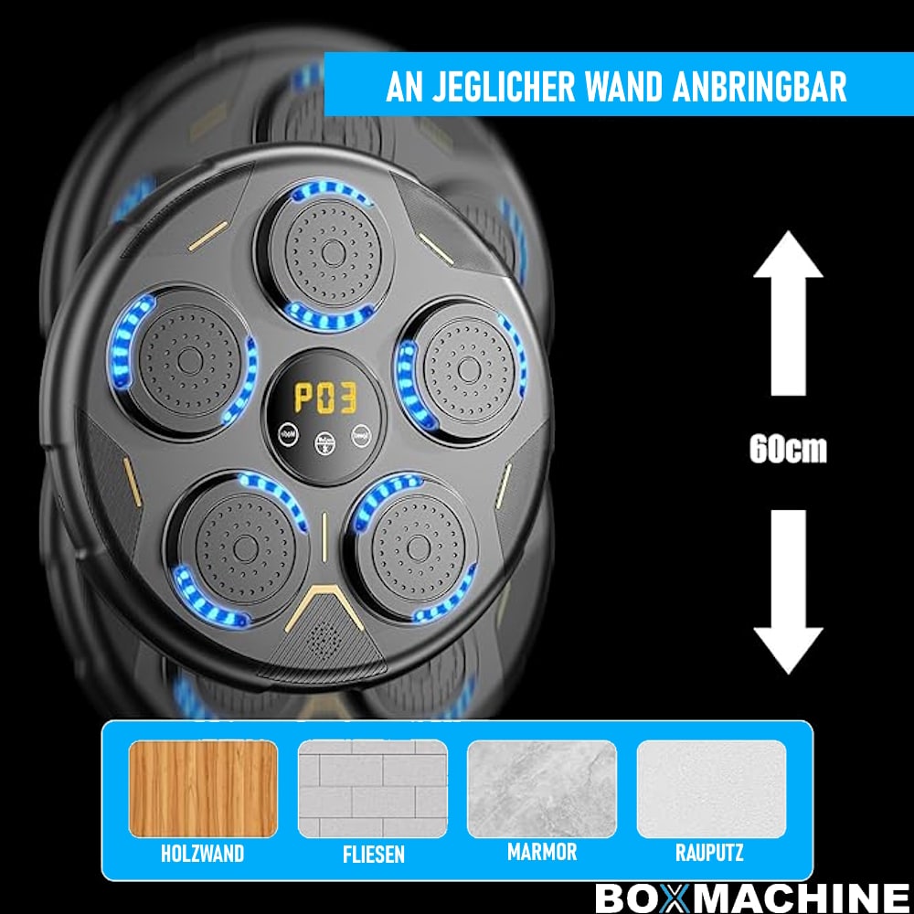 Mit unserer innovativen LED-Boxmaschine und Musikbox wird Ihr Boxtraining zu einem unvergleichlichen Erlebnis. Verbinden Sie sie ganz einfach per Bluetooth mit Ihrem Smartphone und genießen Sie Ihre Lieblingsmusik, während rhythmische Lichteffekte Sie motivieren und inspirieren.