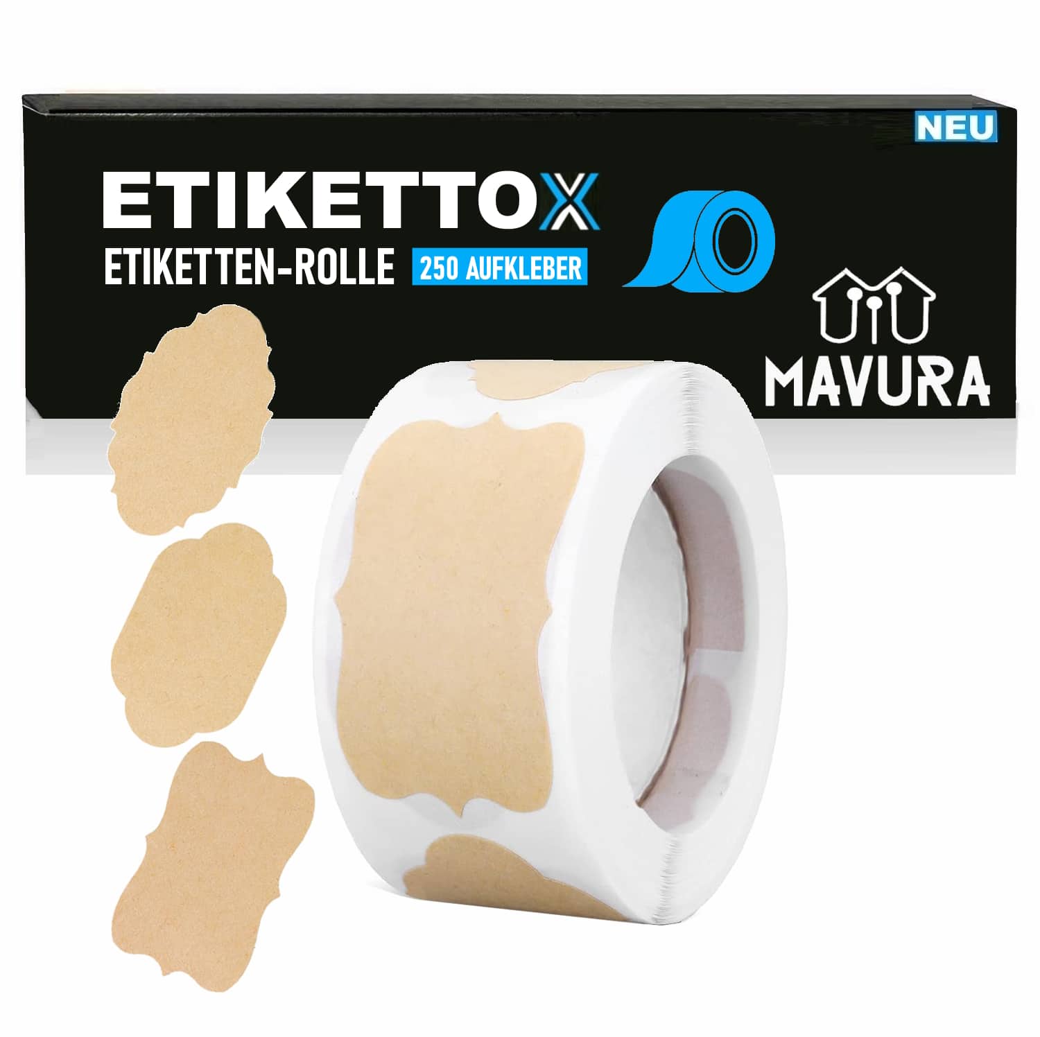 1x MAVURA ETIKETTOX, ETIKETTEN ROLLE (250 Aufkleber)