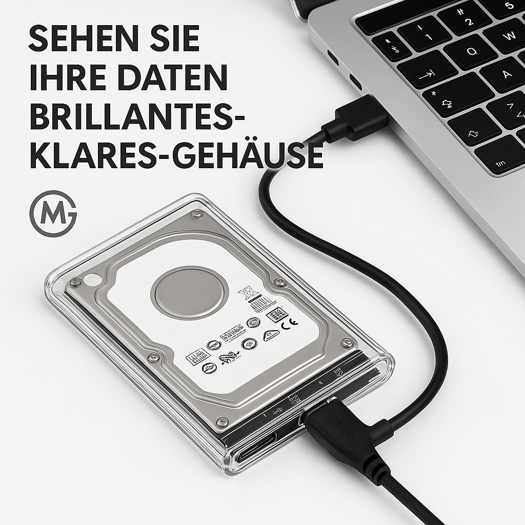 🔍 Modernes Design: Transparentes Acryl-Gehäuse für eine klare Sicht auf Ihre Festplatte.