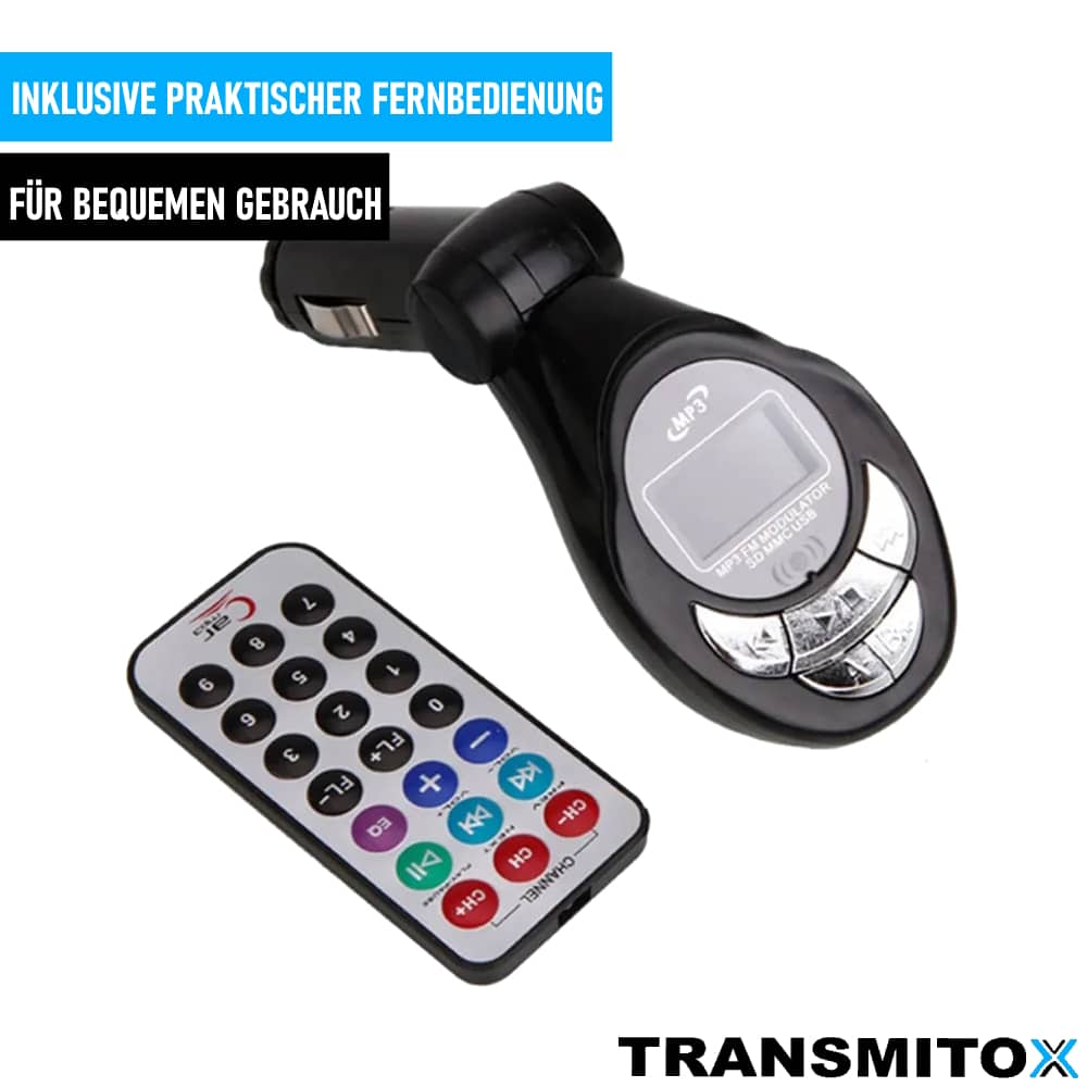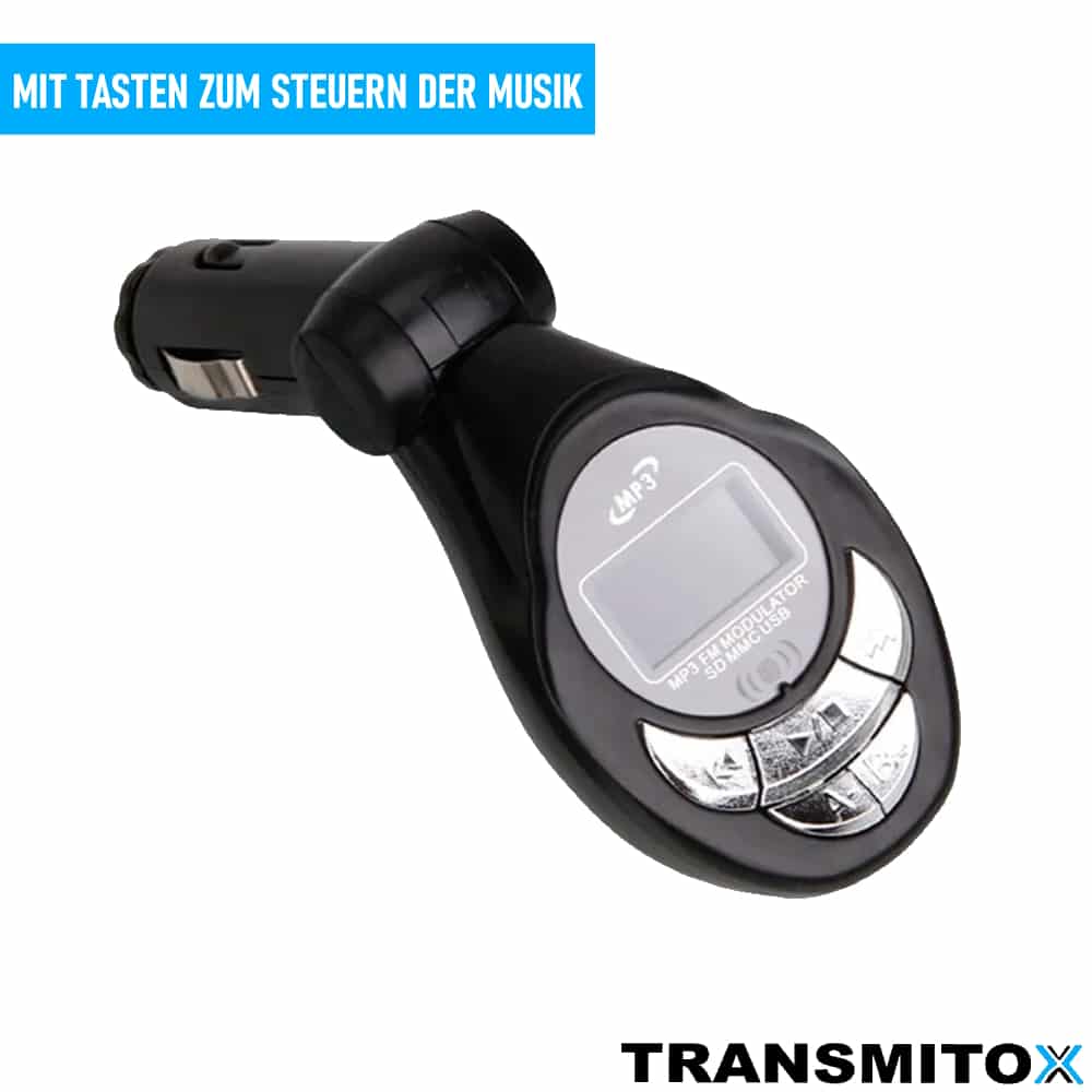 TRANSMITOX wird mit einer handlichen Fernbedienung geliefert, die es Ihnen ermöglicht, die Musikwiedergabe bequem vom Fahrersitz aus zu steuern. Genießen Sie ultimativen Komfort und maximale Freiheit bei der Musikauswahl während der Fahrt.