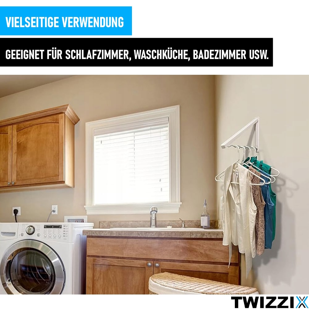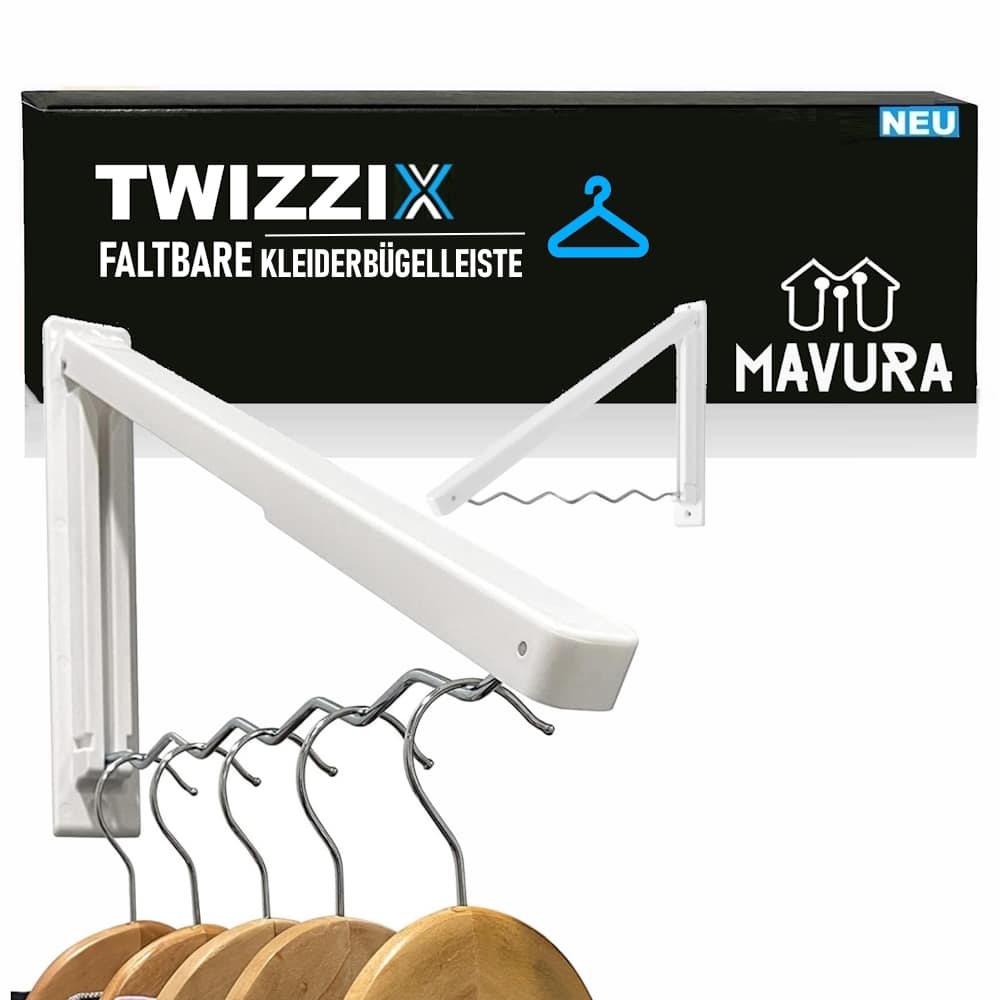 1 x MAVURA TWIZZIX, Faltbare Wand-Kleiderbügelleiste in Weiß