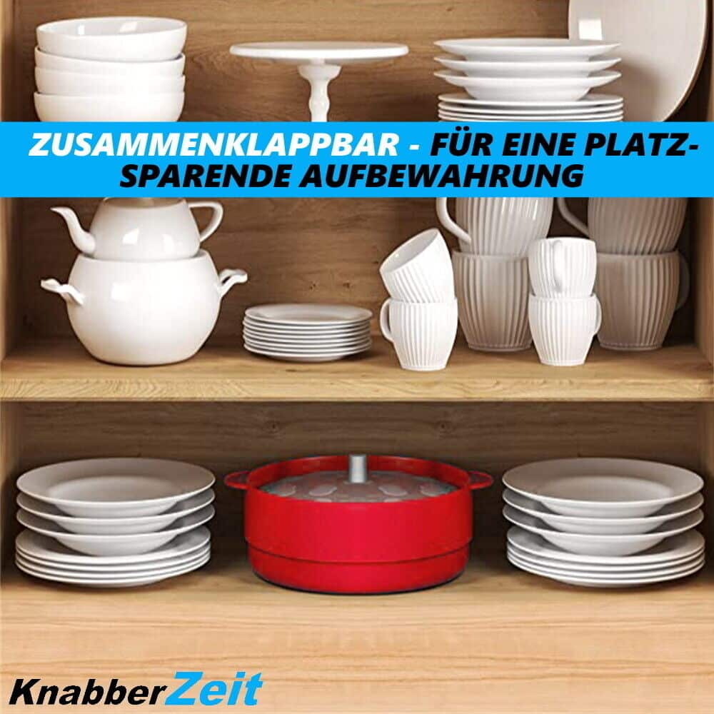 ☑️ PLATZSPAREND: Zusammenklappbarer Mikrowellenbehälter für eine platzsparende Aufbewahrung nach dem Gebrauch.