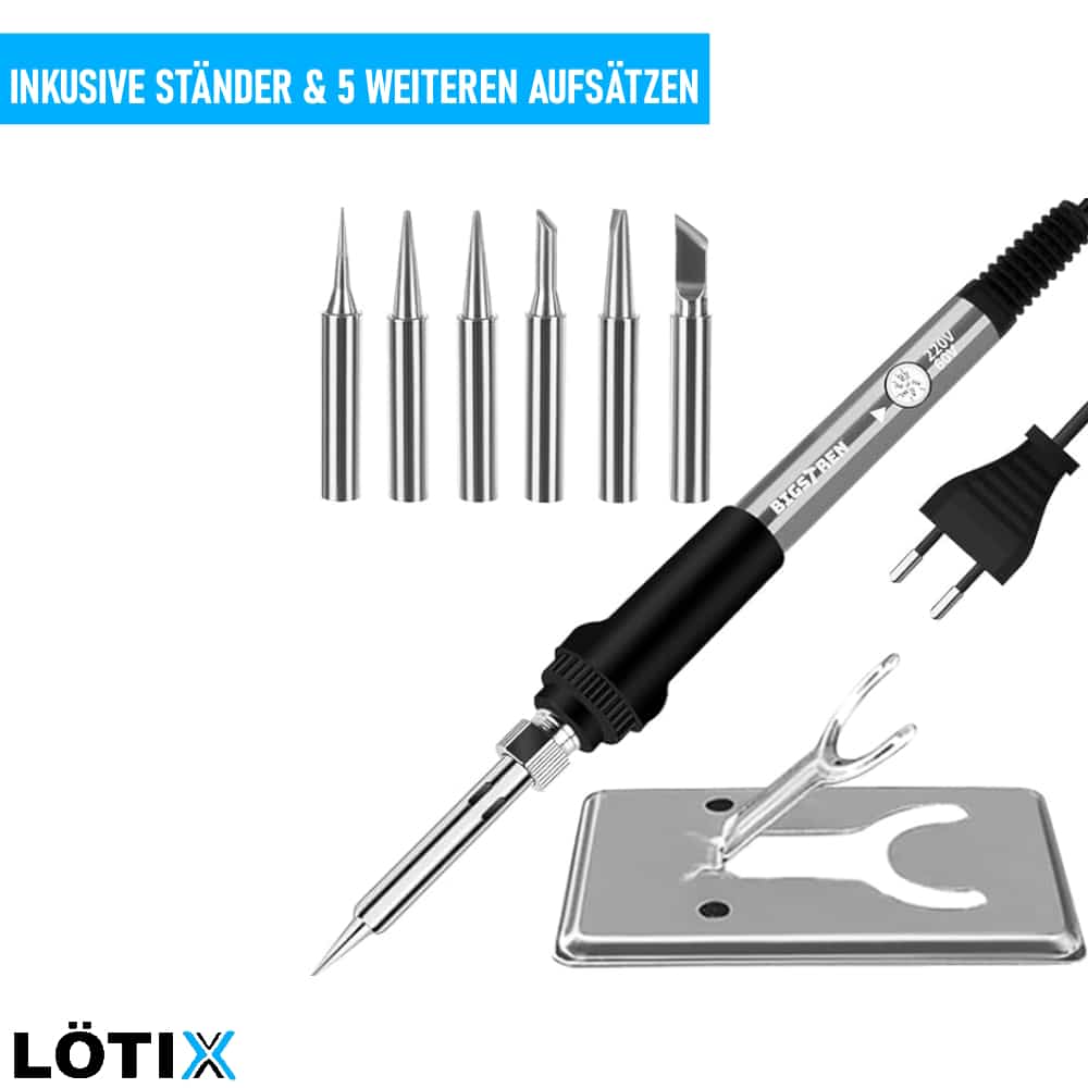 LÖTIX Lötkolben Lötstation Set 60w Feinlötkolben Lötset Lötpistole Soldering Iron mit 6 Spitzen & Ständer