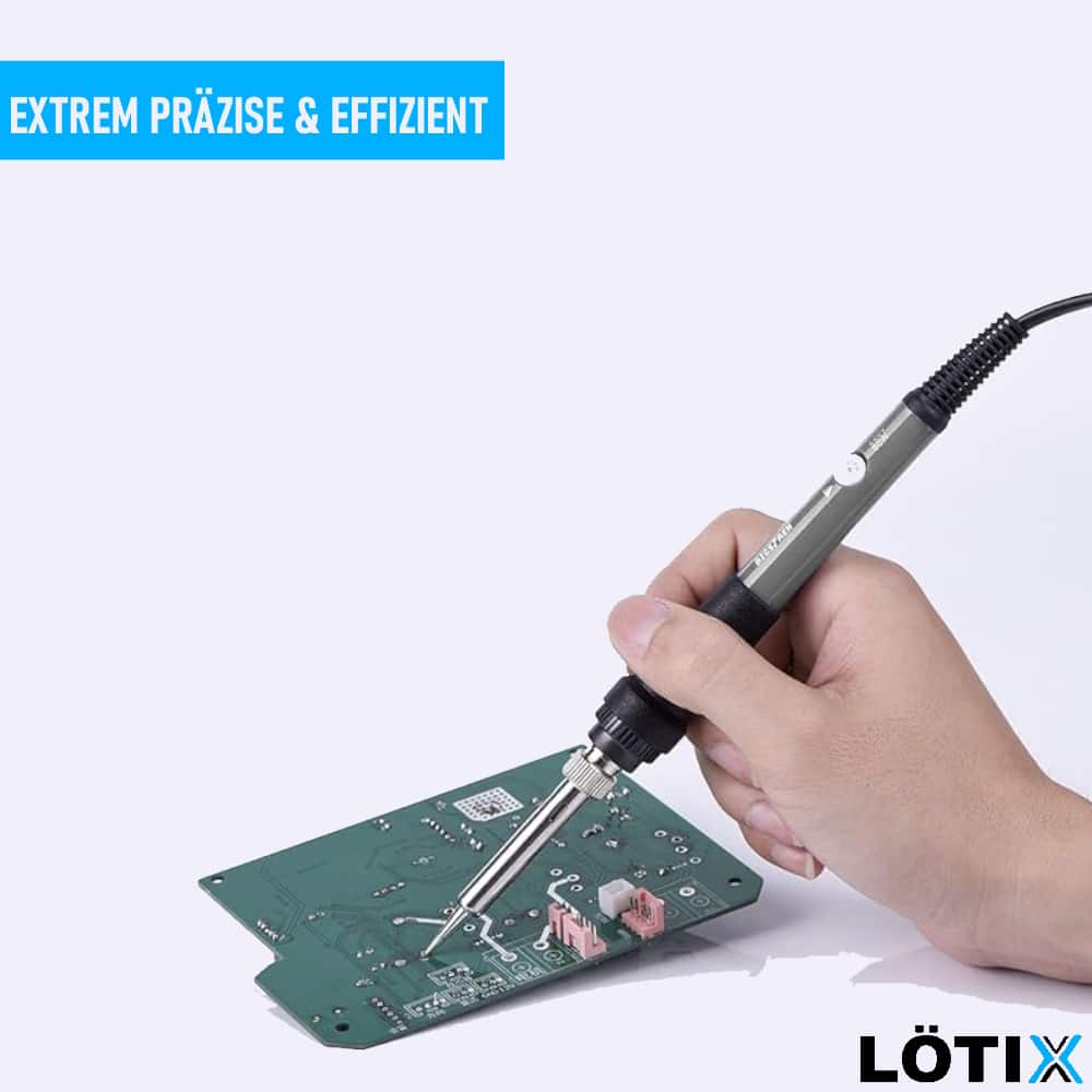 Tauchen Sie ein in die Welt der fortschrittlichen Löttechnologie mit dem LÖTIX Präzisions-Lötwerkzeug. Entwickelt für höchste Präzision und Benutzerfreundlichkeit, bietet dieses Tool eine beeindruckende Genauigkeit in der Temperaturkontrolle, einen schnellen Anstieg der Betriebstemperatur und eine konstant hohe Temperatur.