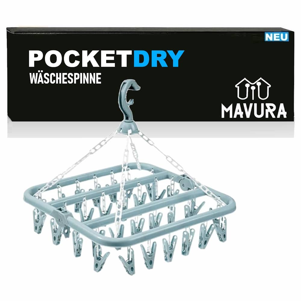 1 x MAVURA POCKETDRY, Praktische Wäschespinne zur Trocknung der Wäsche