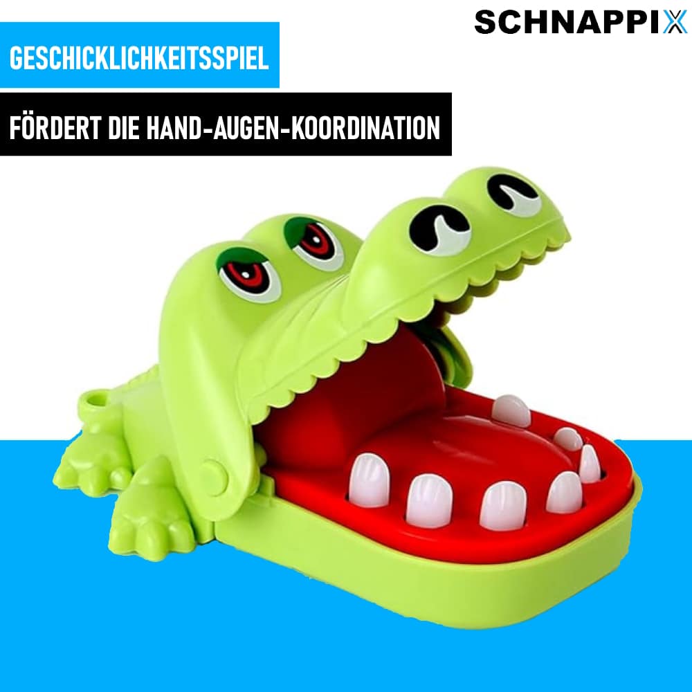 ☑ SPANNENDES SPIELPRINZIP: Spieler drücken die Zähne des Krokodils, doch Vorsicht: Ein falscher Zahn lässt das Maul zuschnappen.