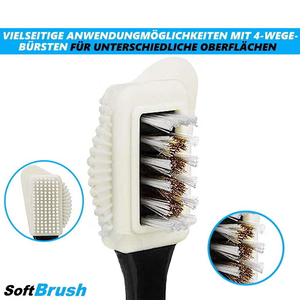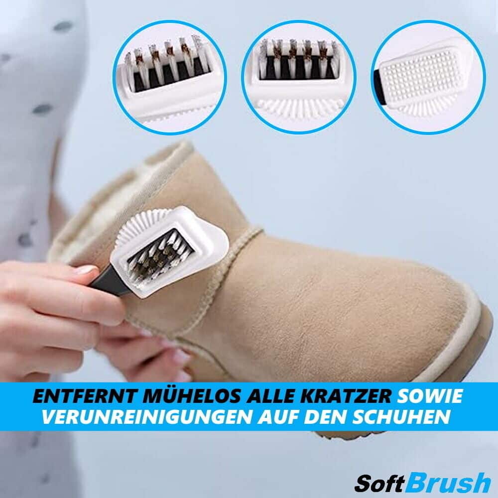 Mit vier verschiedenen funktionalen Seiten deckt SoftBrush jeden Aspekt der Schuhreinigung ab. Die Bürstenseite entfernt mühelos Oberflächenschmutz, während die Rillenseite hartnäckige Flecken bekämpft. Die Borstenseite reinigt und poliert Leder und Wildleder sanft, während die Reibeseite das Material des Schuhs wiederbelebt und erfrischt. Erleben Sie eine umfassende Reinigungserfahrung wie nie zuvor!