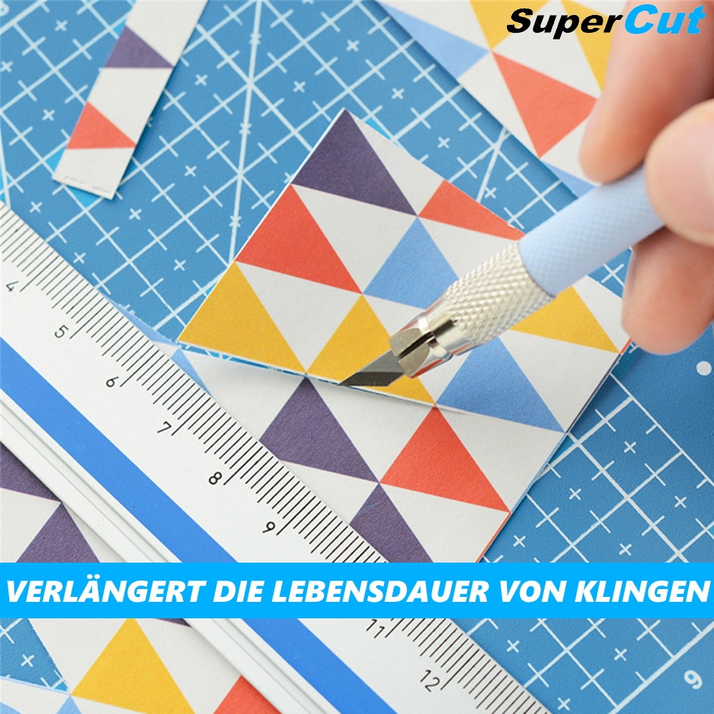 Die Haltbarkeit Ihrer Werkzeuge ist uns genauso wichtig wie Ihr kreativer Prozess. Unsere Schneidematte schont Ihre Klingen, verlängert ihre Lebensdauer und sorgt für mühelose, präzise Schnitte. Gleichermaßen schützt sie Tischflächen vor den Spuren scharfer Werkzeuge, Kleber und Farben, so dass Ihre Arbeitsumgebung stets makellos bleibt.