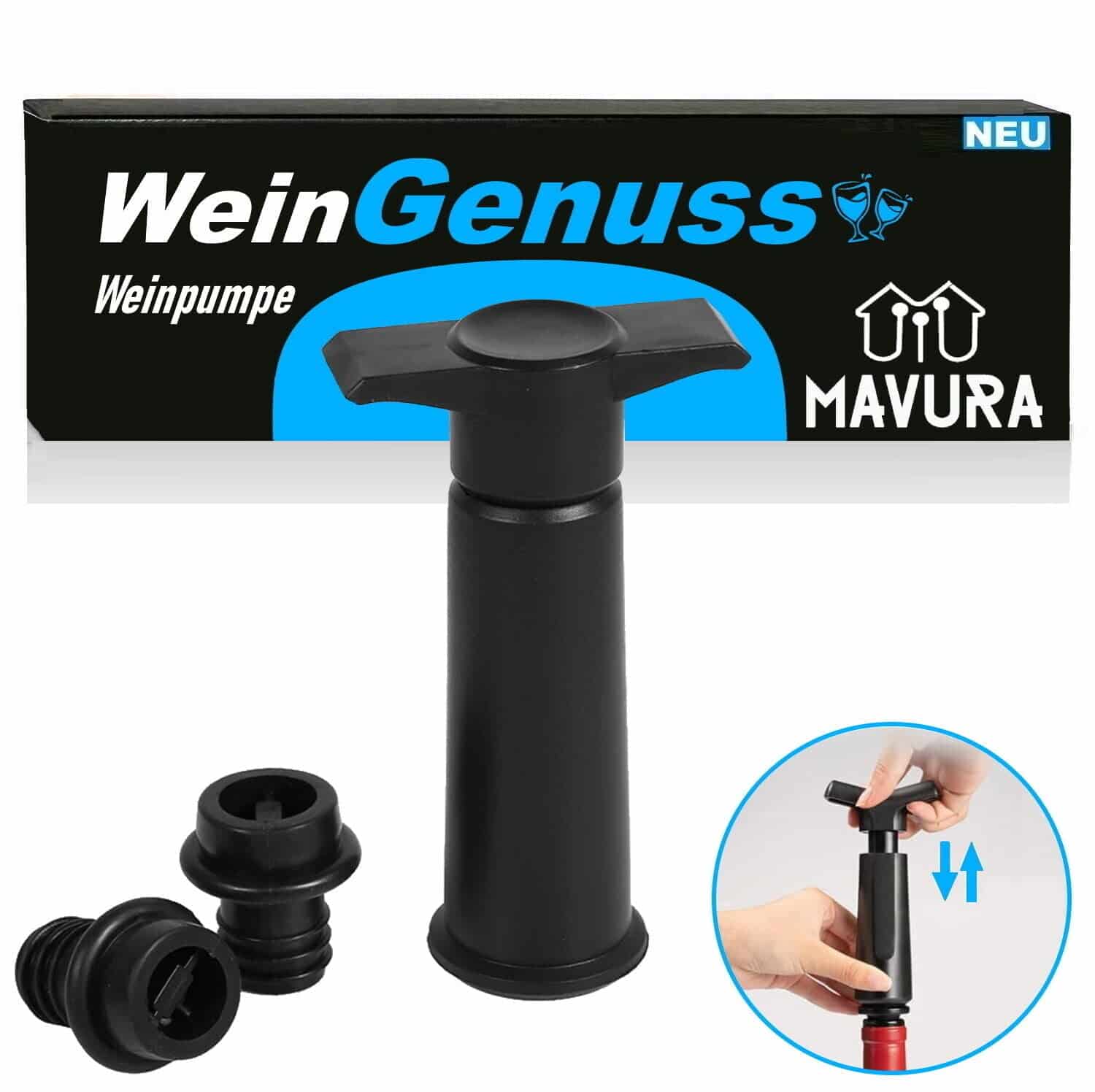 1 x MAVURA WeinGenuss, Weinpumpe mit 2 Stopfen